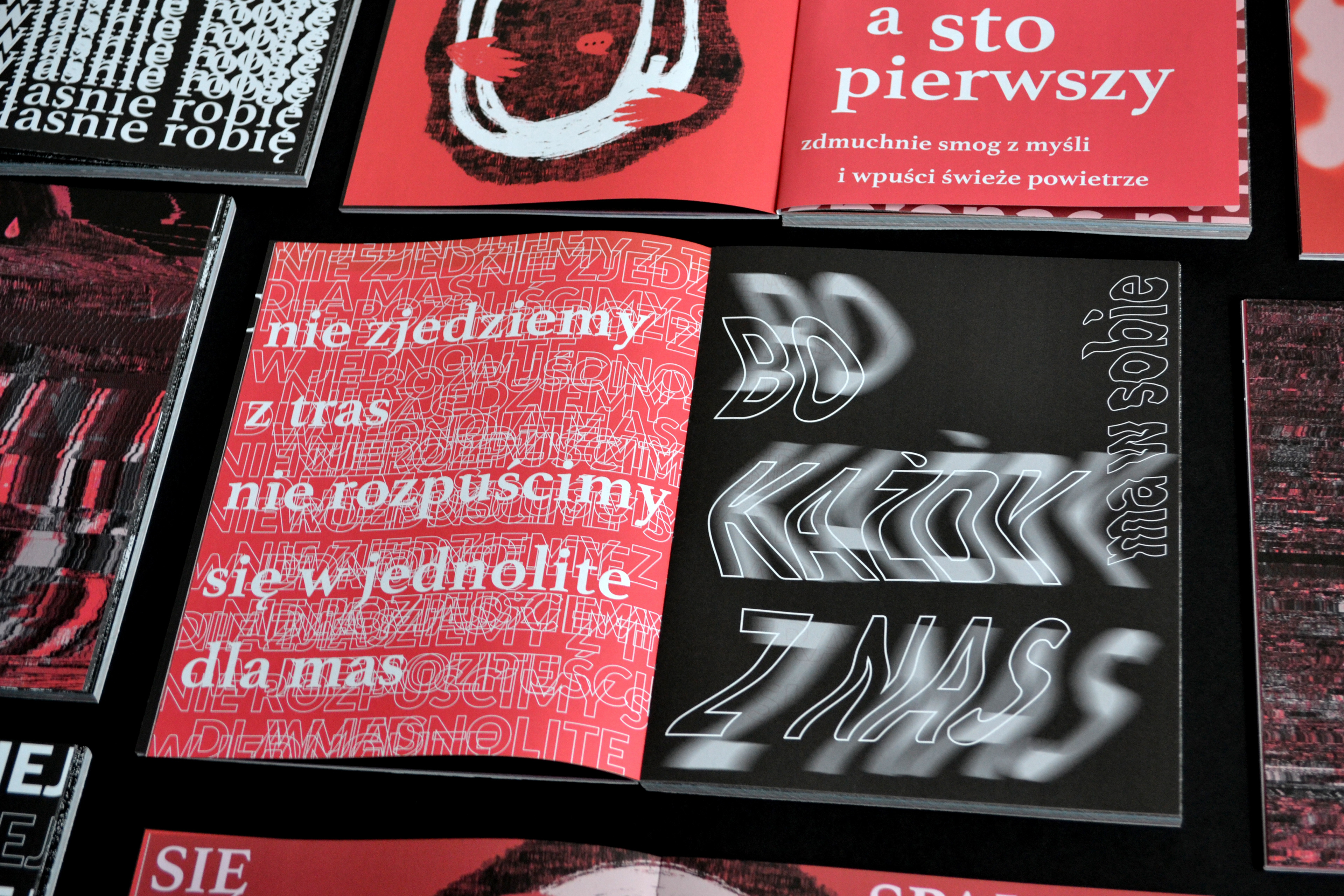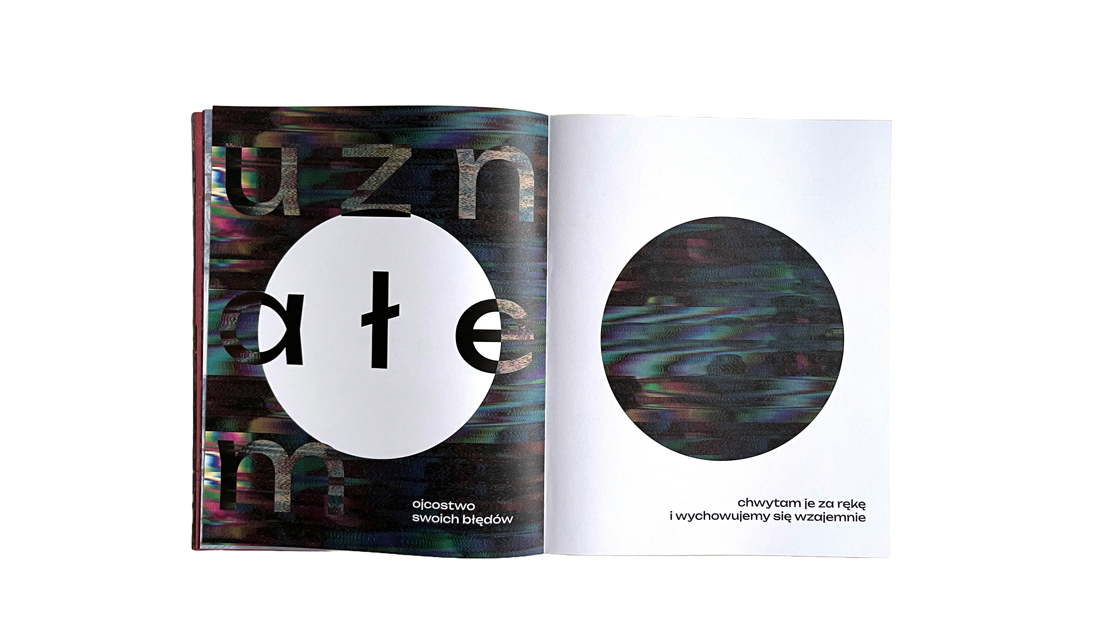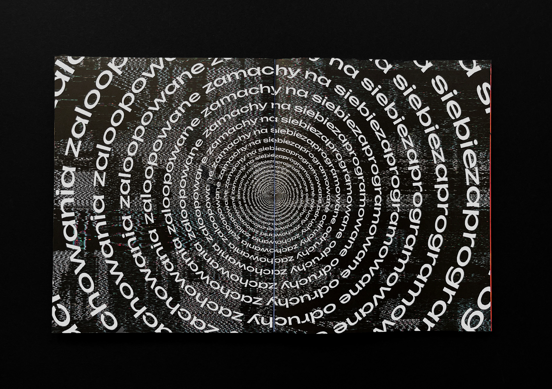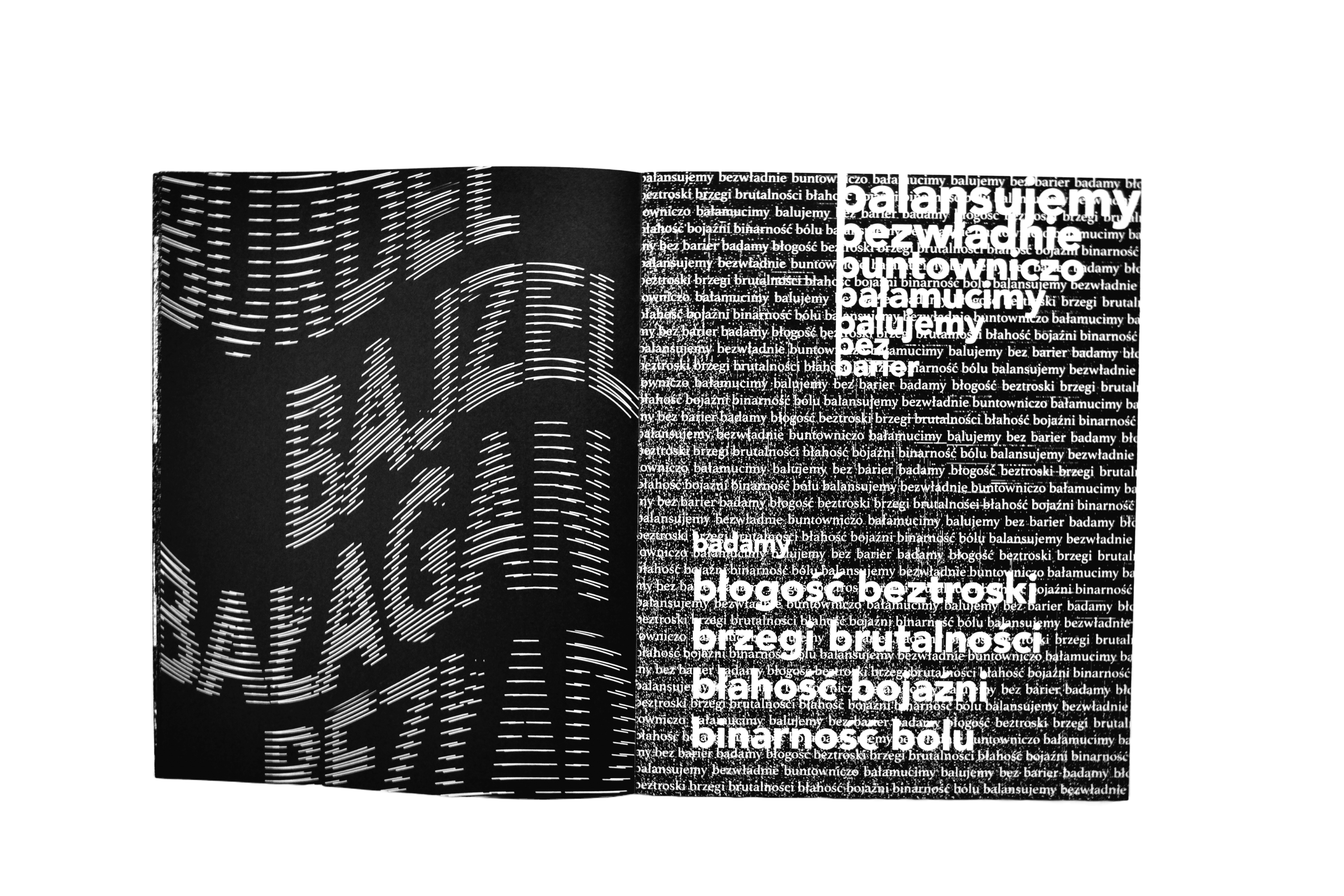 [ENG] “Obłędność” [loosely translated to "Madness"] is a publication that gathers texts performed by the author at poetry slams in 2021–2022. It presents them in a reworked form, using experimental typography combined with glitch-art-inspired illustrations. The book attempts to convey the energy and ephemerality of slam texts—written for stage performance—in a graphic format. The size and placement of letters reflect the pace and tone of the spoken words. Legibility makes room for impression, and content of poems becomes a pretext for new compositions. The publication’s eclecticism reflects the author’s aesthetic interests and offers poetry in a new, visually engaging perspective for the reader.